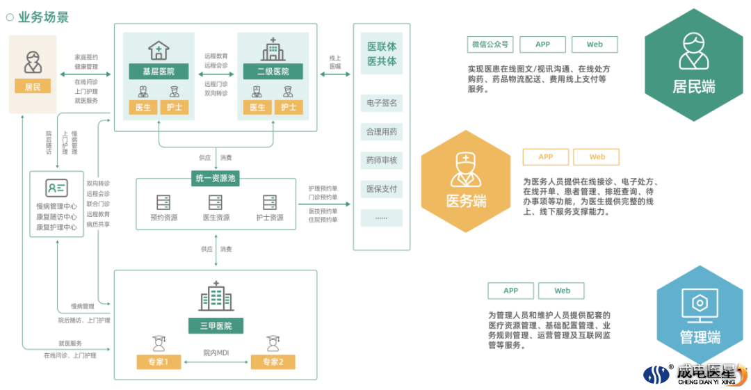 紧密型县域医疗卫生共同体,以“互联互通、统一管理、业务协同、分级诊疗”为核心,建设“12563”医共体平台,打造“县级医院为龙头,乡镇卫生院为纽带,村卫生室为基础”的一体化服务体系,构建“基层首诊、双向转诊、急慢分治、上下联动”的分级诊疗模式。